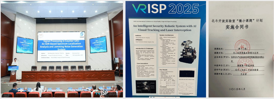 以学促赛、以赛促研,我院创新型人才不止于赛场。2025年,电信院学生创新能力持续“破圈”彰显价值。《Signal Processing in Counter-UAS: An SDR-Based Spectrum Localization Analysis and Jamming Noise Generation System》等多篇竞赛衍生论文成功入选国际学术会议,以新颖的研究视角与思路向海内外同行传递一师青年的科创智慧。以赛促提升、以赛促就业成效显著,竞赛提升了学生综合素养,竞赛成为学子求职的“金钥匙”——20电信1班周玉、21电信2班谭慧文、22电信3班王业宏等经过竞赛锤炼的优秀学子,尚未毕业便凭借竞赛积累的实践能力受到企业争抢。数据显示,学院本专业就业对口率与考研升学同比提升15%,学科竞赛已成为促进学生发展的重要加分项。