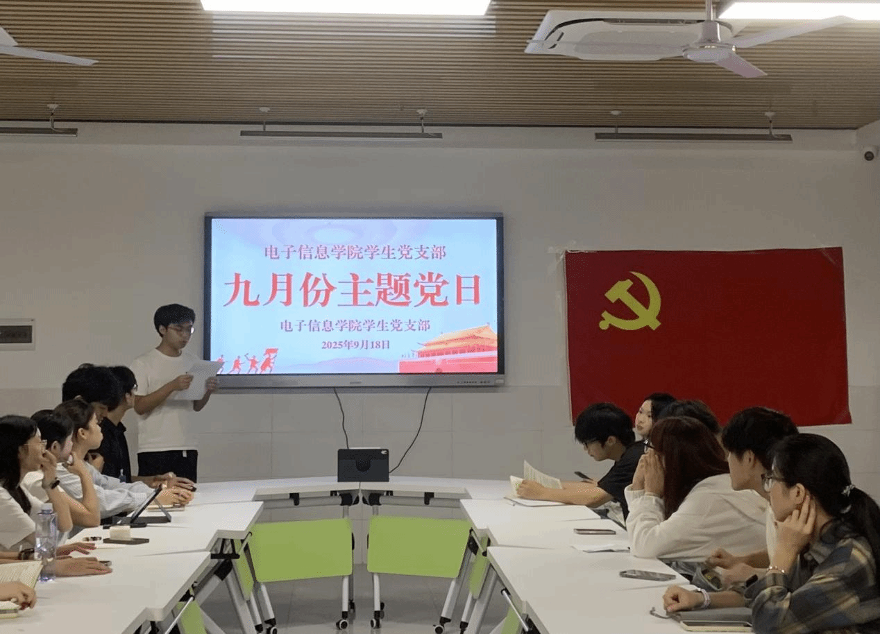为深入学习习近平总书记在纪念中国人民抗日战争暨法西斯战争胜利80周年大会上的重要讲话精神,进一步加强学生党员对抗战历史的深刻认识与民族复兴使命的自觉担当,电子信息学院学生党支部于2025年9月18日在立园楼504会议室开展九月份主题党日。学生党支部书记姚瑶及全体党员参加此次会议,姜绎伦同学主持。