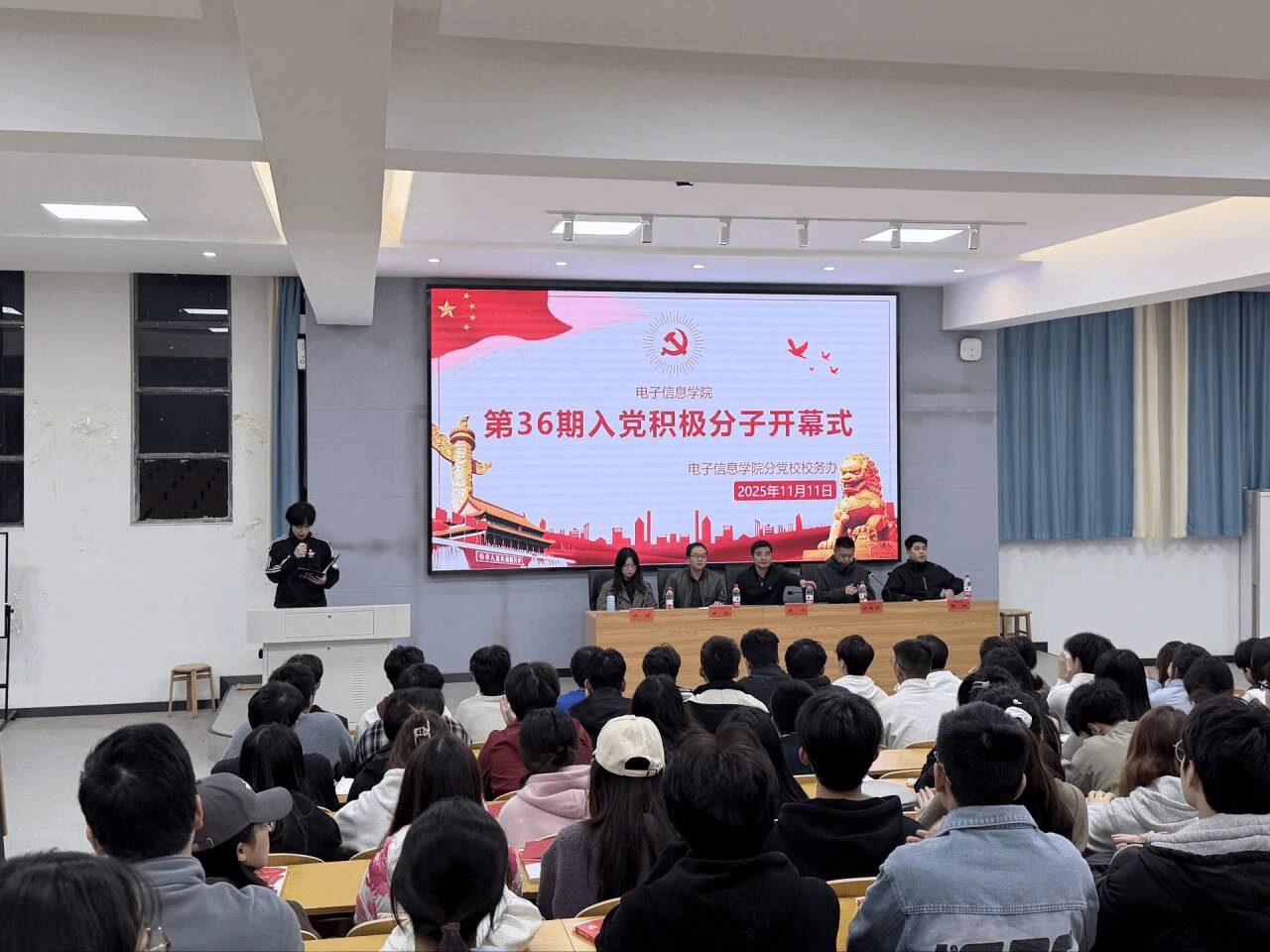 (通讯员:陈翰 王雪怡)为深入贯彻新时代党的建设总要求,加强入党积极分子思想政治教育,电子信息学院学生党支部于2025年11月11日在玉衡南101会议室开展第三十六期入党积极分子培训班开班仪式。院党委书记吴涛、党委副书记伍雁鹏、学工办主任余亮、学生党支部书记姚瑶、分团委书记谭炜及本期入党积极分子参加此次会议,张程主持。