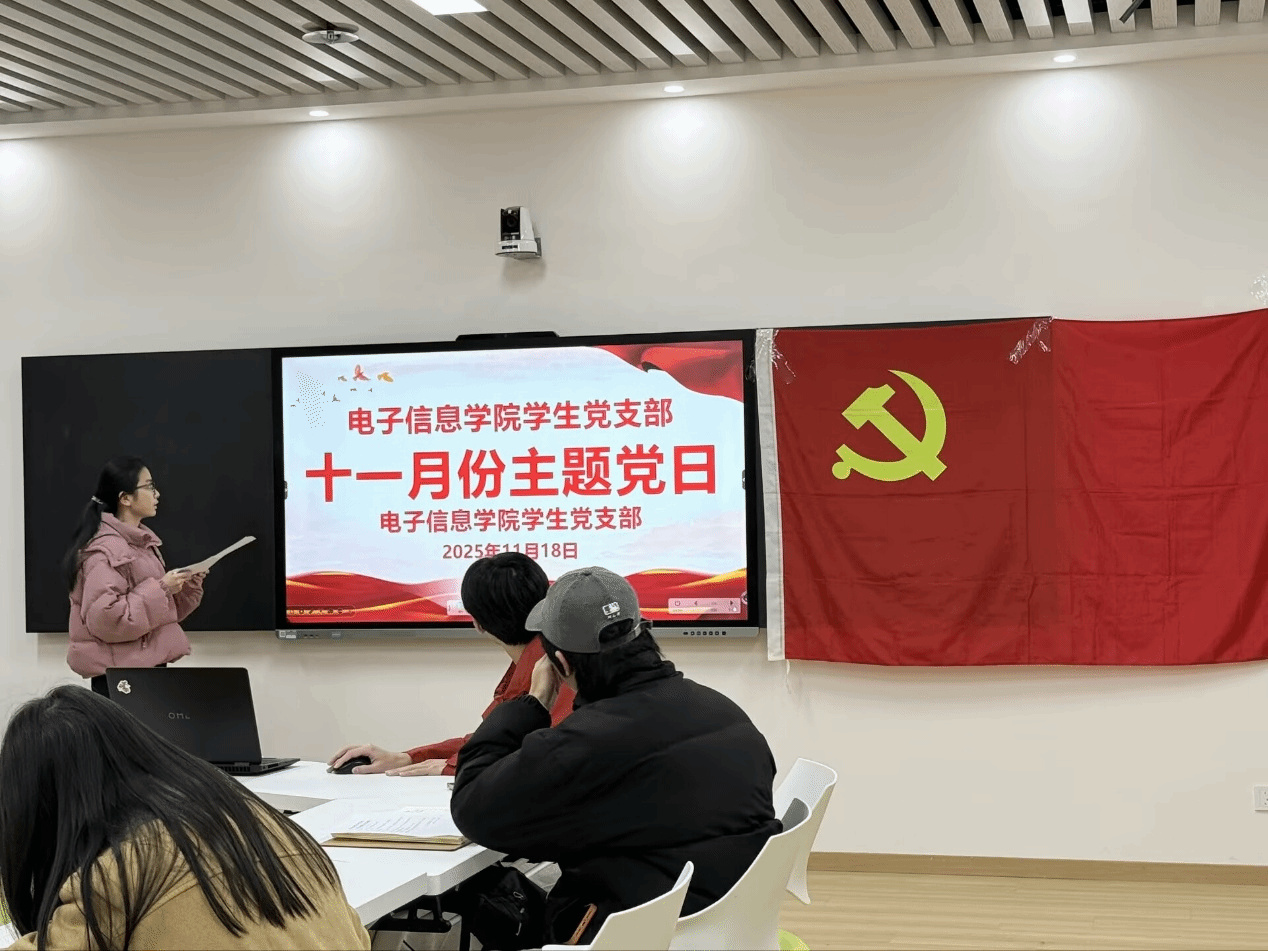 (通讯员:王韵尔 易婧雅)为深化理论学习,提升学生党员的思想政治觉悟,电子信息学院学生党支部于2025年11月18日在立园楼602会议室开展十一月份主题党日。学生党支部书记姚瑶及全体学生党员参加此次会议,张柳主持。